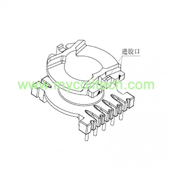 Bobina vertical PQ32 Bobina PQ32 de fenda única com 6+6 pinos. Tamanho da bobina = 33,8 mm x 31,8 mm x 32,7 mm. Passo do pino = 5,0 mm, distância paralela = 22,8 mm. Personalizamos ferramentas especiais para bobinas de acordo com os requisitos de tamanho. Amostras podem ser enviadas para teste.